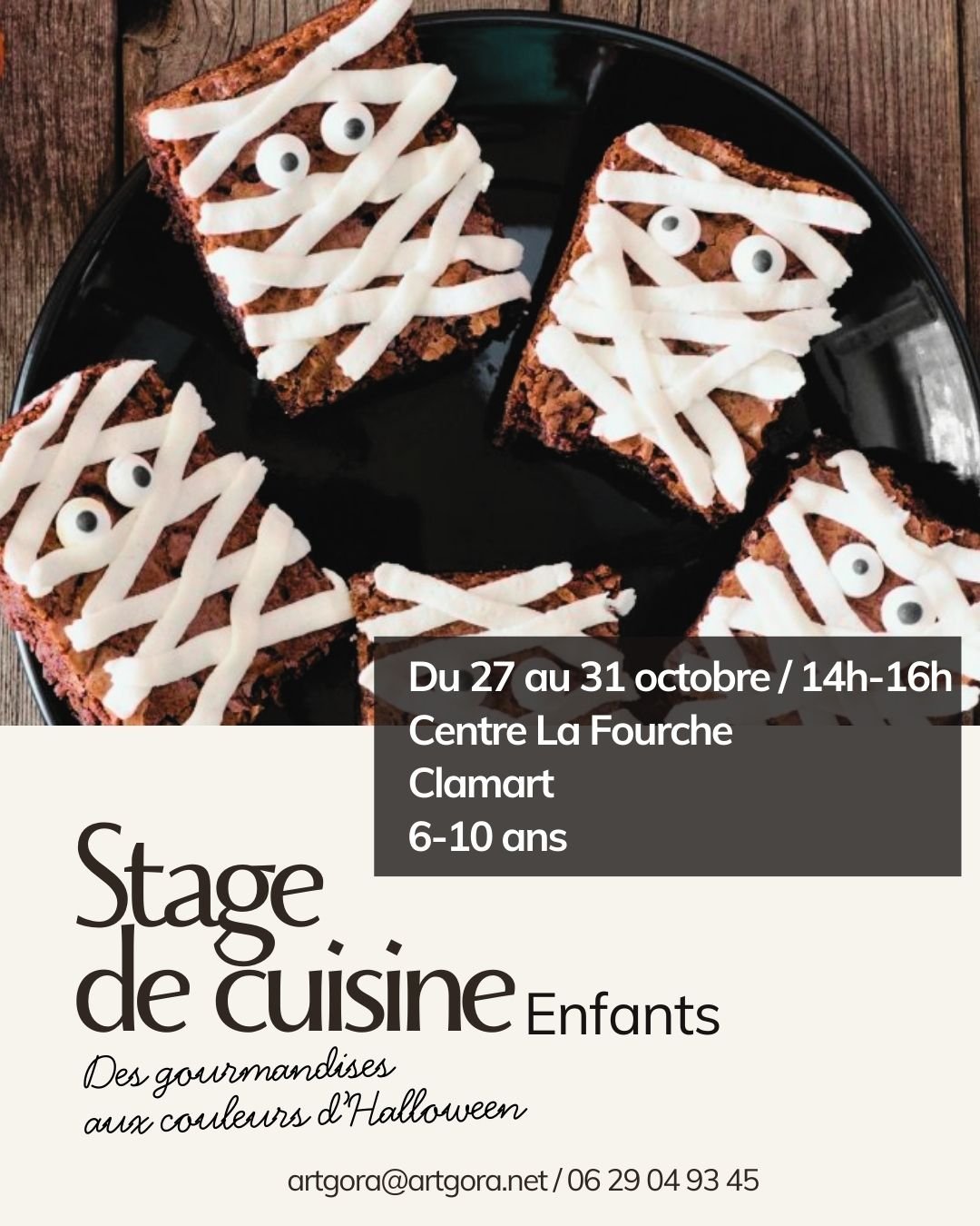 Pendant les vacances de la Toussaint, Artgora invite les enfants à entrer dans l’univers gourmand d’Halloween avec un stage de cuisine ludique et créatif. L’occasion idéale de préparer de délicieuses recettes effrayantes aux couleurs de la fête.
